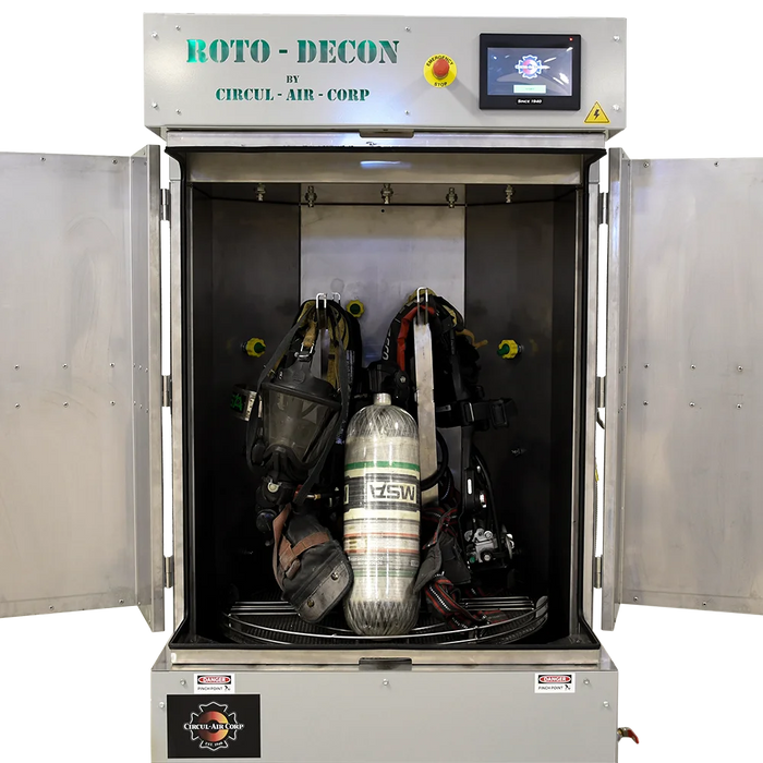 Roto-Decon SCBA Washers are the latest addition to the Circul-Air Corp Family. A purpose built cabinet washer for the decontamination of self-contained breathing apparatus, PPE and other firefighting accessories to NFPA 1851 standards.